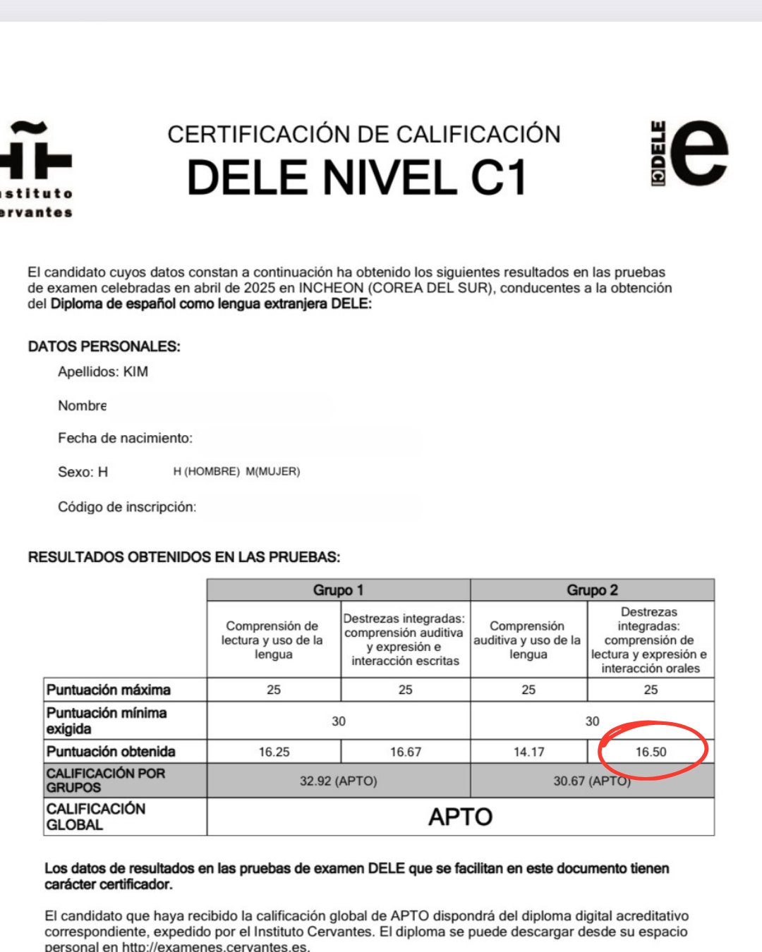2025년4월 델레 C1 합격 후기 (Leo쌤)
