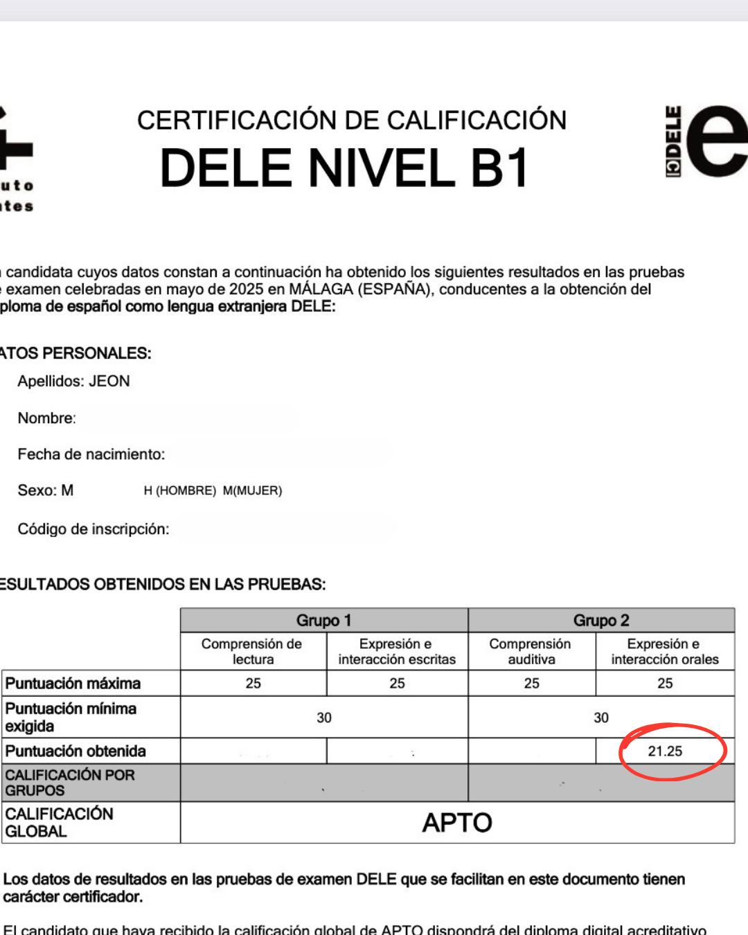2025년 5월 델레 B1 합격 후기 (Smith쌤)
